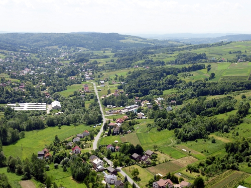 rozciągała się nad potokiem Gwoźnica i była prawie w całości drewniana. Na terenie wsi był