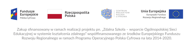 Zakup sfinalizowany w ramach realizacji projektu pn. „Zdalna Szkoła-wsparcie Ogólnopolskiej Sieci Edukacyjnej w systemie kształcenia zdalnego” współfinansowanego ze środków Europejskiego Funduszu Rozwoju Regionalnego w ramach Programu Operacyjnego Polska Cyfrowa na lata 2014-2020