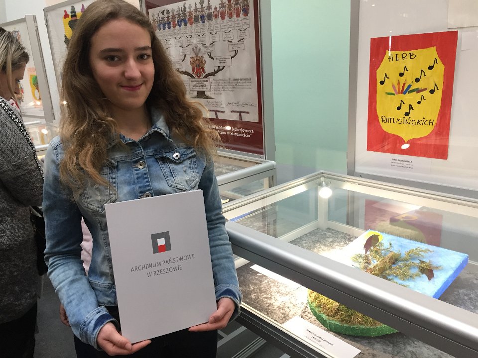 Uczennica klasy III gimnazjum Sylwia Drozd zajęła I miejsce w wojewódzkim konkursie plastycznym "HERB OJEGO RODU", organizowanym przez Archiwum Państwowe w Rzeszowie.