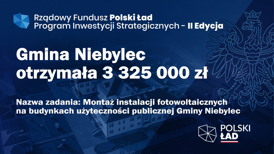Pierwsze zadanie o wartości 3 325 000 zł dotyczy montażu instalacji fotowoltaicznych na budynkach użyteczności publicznej Gminy Niebylec. W ramach tej inwestycji przewiduje się montaż kompletnych instalacji fotowoltaicznych wraz z magazynami energii na potrzeby pokrycia zapotrzebowania własnego na energię elektryczną dla 14 budynków użyteczności publicznej Gminy Niebylec, w tym dla 10 szkół podstawowych, budynku Urzędu Gminy Niebylec, budynku Urzędu Stanu Cywilnego, budynku Gminnego Ośrodka Pomocy Społecznej oraz budynku Przedszkola Samorządowego w Niebylcu. Dodatkowo przewiduje się montaż kompletnych mikroinstalacji fotowoltaicznych na potrzeby pokrycia zapotrzebowania własnego na energię elektryczną dla 8 domów wiejskich w miejscowościach: Połomia, Baryczka, Blizianka, Lutcza, Konieczkowa, Gwoźnica Dolna, Gwoździanka i Jawornik, dla budynku Ochotniczej Straży Pożarnej w Gwoźnicy Górnej oraz dla budynku Dziecięco-Młodzieżowego Schroniska Turystycznego w Lutczy. Realizacja inwestycji przyczyni się do zwiększenia udziału odnawialnych źródeł energii w bilansie energii na terenie Gminy Niebylec, a tym samym na zmniejszeniu zapotrzebowania na energię elektryczną od dostawców zewnętrznych, znaczącemu obniżeniu kosztów jej zużycia, a pośrednio również na zmniejszeniu emisji gazów cieplarnianych.