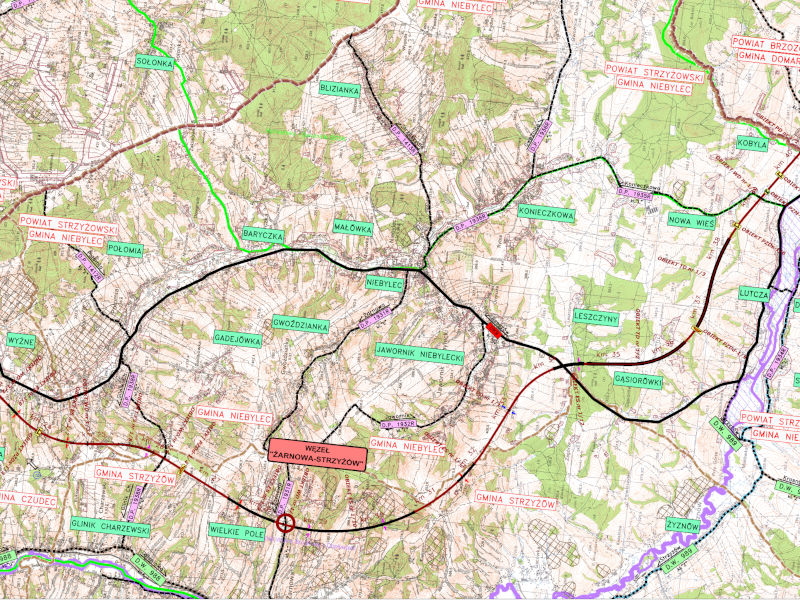 Węzły drogowe w pobliżu gminy Niebylec będą zlokalizowane w Żarnowej (tuż przy granicy z gminą), Domaradzu oraz Babicy.