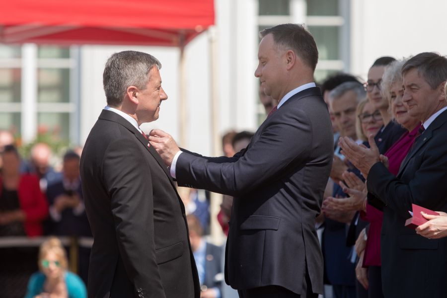 Prezydent RP w trakcie uroczystości podkreślał ważną służbę publiczną. "Jesteście państwo, absolutnie śmiało można powiedzieć, sprawdzonymi ludźmi, którzy wiele już z siebie dali dla rozwoju swoich wspólnot lokalnych i regionalnych, dla rozwoju tych obszarów, które obejmują jednostki samorządu terytorialnego, w których państwo służycie, służycie podkreślam to słowo" - zaznaczył prezydent Andrzej Duda. "Bardzo serdecznie w imieniu RP za dotychczasową służbę dziękuje i proszę o jeszcze" - dodał.