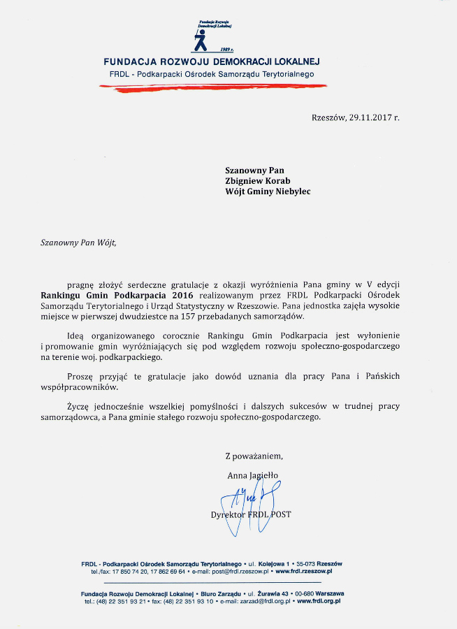 Czytaj więcej: Gmina Niebylec wyróżniona w Rankingu Gmin Podkarpacia 2016